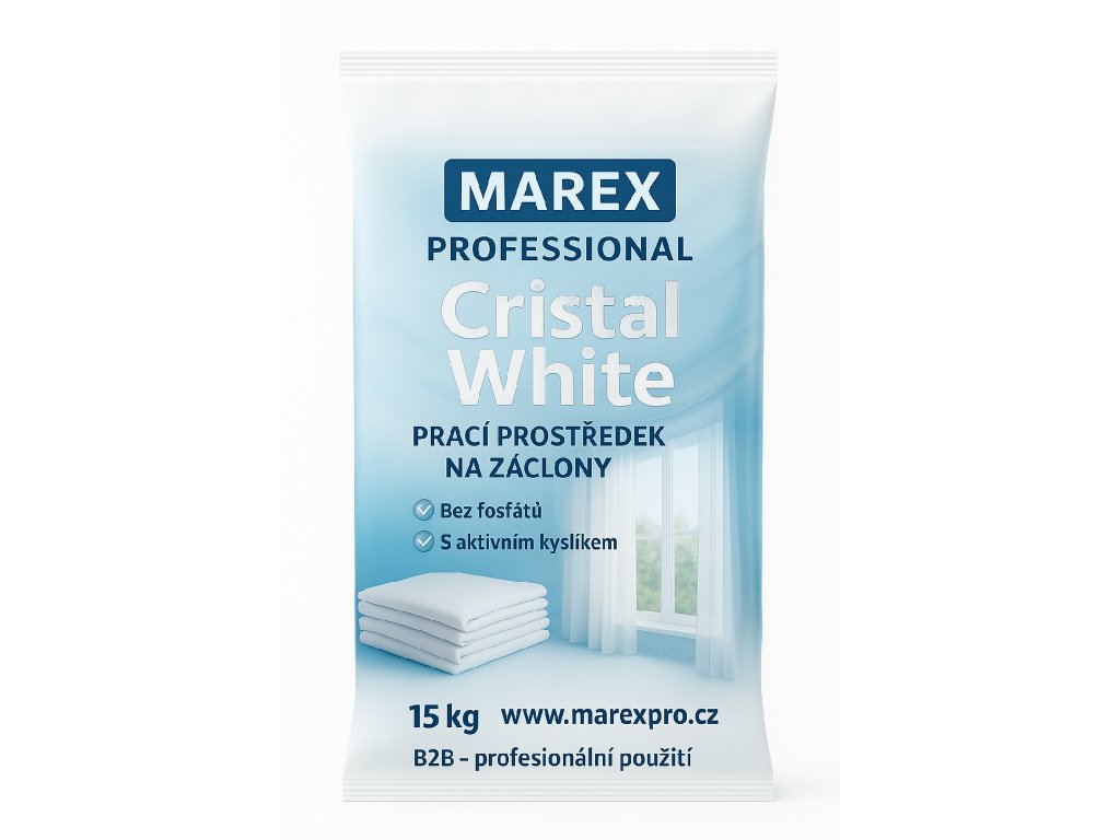 - Marex Cristal White – speciální prostředek na praní záclon a jemných textilií.