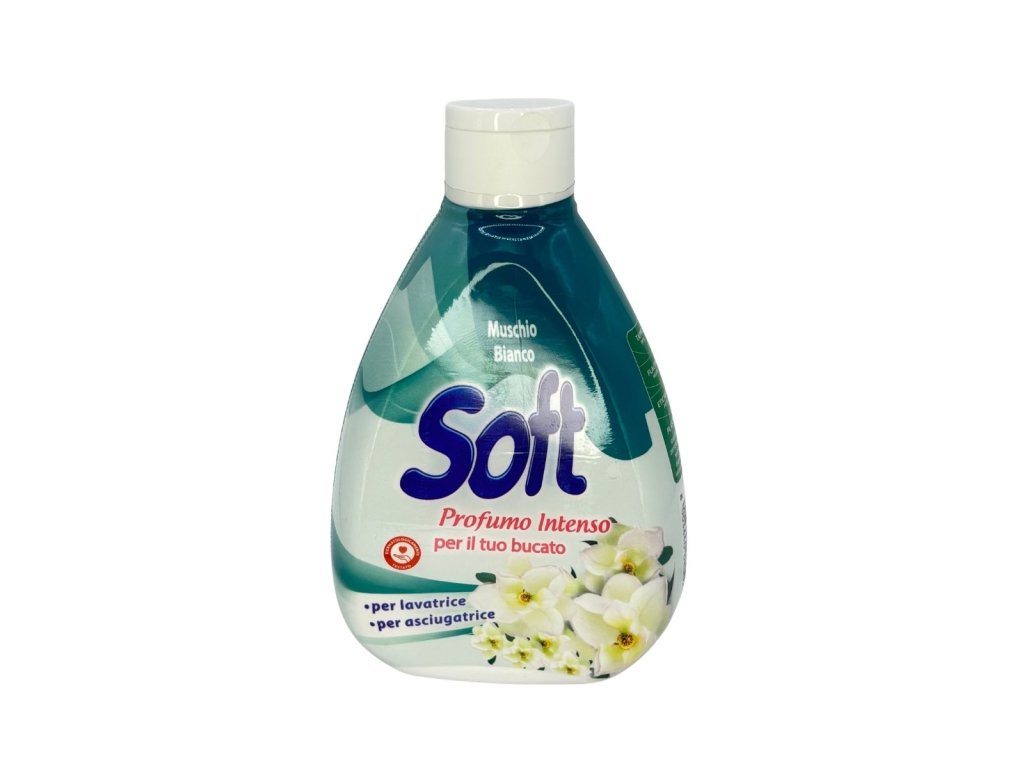 SOFT Muschio Bianco dodává prádlu dlouhotrvající jemně květinovou a svěží vůni s tóny bílého pižma. Aplikujte při posledním máchání nebo přímo do sušičky. Parfém je navržen tak, aby se vázal na vlákna a vůně se uvolňovala postupně.
